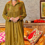 Al-Murassa kaftan evokes regal charm through its intricate beadwork and flowing silhouette. Crafted in plush velvet, it blends artisanal detail with everyday comfort. From collar to cuff, each embellishment tells a story of timeless elegance.
