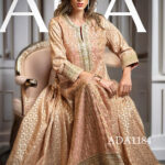 Details : Entricate handwork at neckline with zordozi, beads & sequins work. Center panel adorned with heavy handwork with zari embroidery. Delicate gold embroidery at the sleeve cuff, ikat pattern brocade fabric all over the body.