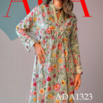 A symphony of silk and light, this kaftan is adorned with neckline that glimmers with delicate embroidery, kissed by intricate sequins. Every inch of the dress is alive with silk-thread artistry, blossoms unfurling across its expanse. At the waist, gentle gathers cinched with a drawcord create a silhouette both fluid and refined, while functional cuffs with buttons add a whisper of tailored elegance.