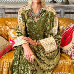 This silk velvet kaftan’s silhouette flows effortlessly, while the sleeves tell a story of craftsmanship—adorned from shoulder to cuff with intricate embroidery in vibrant threads that echo heritage and artistry. At the cuff, off-white mirror work embroidery shimmers softly, framed by a bold red piping that adds a touch of contrast and ceremonial grace.
