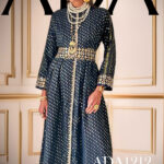 A graceful cotton kaftan adorned with an allover golden dots print on black fabric that shimmers with understated opulence. The silhouette features a full front opening—from collar to hem—with delicate handwork that embellishes the collar,neckline, and cuffs, adding artisanal depth to its refined design. Paired with a separate embroidered belt, this piece invites styling versatility.