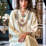 Details : Neckline and back panel adorned with zardozi embroidery, zari threads and sequins, gold and silver zari tape along with beadwork of scallop design