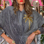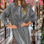 A radiant expression of understated opulence, this silk velvet kaftan is crafted from golden-striped fabric with a subtle crinkle texture. Thoughtfully designed pleats sculpt the silhouette, adding graceful volume and a sense of fluid elegance. The batwing sleeves taper into functional cuff openings, allowing for versatile styling and ease of wear. This piece balances artisanal detail with effortless sophistication.
