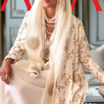 Crafted in a luminous canvas and embroidered with celestial gold filigree. Floral motifs bloom across the fabric, culminating in a delicate burst of sequined embroidery at the pocket. Completing the look is a separate scarf, ethereal in texture and embellished with golden boota embroidery. It also features a separate scarf with boota embroidery that elevates it furthermore.
