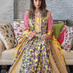 The main body of this cotton kaftan boasts a resplendent yellow base, adorned with a flourishing floral pattern that features delicate black and yellow blossoms intertwined with verdant green leaves and regal purple accents. Adding to its charm, the sleeves and side panels showcase a striking contrast with intricate red and white zigzag patterns, seamlessly merging with geometric diamond shapes in pristine white on a vibrant yellow canvas.