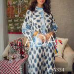 A vision in luxury, this kaftan unfolds in a symphony of ikat artistry and floral poetry. The front-open silhouette, adorned with a hidden buttons, flows effortlessly from neckline to hem, framed by scalloped lace that dances along the edges. Black piping lends definition to the delicate contours, while floral motifs bloom across the neckline, sleeves, and back panels, weaving a story of refinement and heritage.