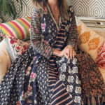 Crafted in tapestry of tradition, this cotton kaftan has neckline which is adorned with delicate embroidery, drawing the eye with quiet elegance. Panels bloom with floral motifs and rhythmic stripes, while the sleeves and bottom hem echo with ikat patterns—each stitch kissed by silver and gold lurex, catching light like whispered secrets.
