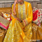 This kaftan radiates opulence through its luminous silk velvet and masterful embroidery. Adorned with pearl beads, sequins, and delicate dori work, it captures the essence of ceremonial grandeur while offering effortless grace. Every stitch speaks of heritage, every panel whispers elegance.
