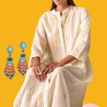 Where refinement meets quiet grandeur, this kaftan artfully contrasts the tactile charm of silk. The silhouette is adorned in allover embroidery, like a garden woven with whispers. The side panels ground the design with soft texture, while the silk drapes in liquid light, catching every movement.